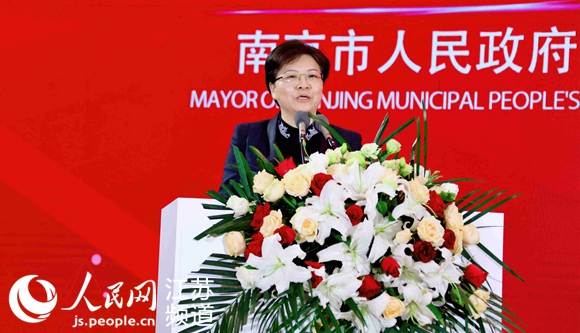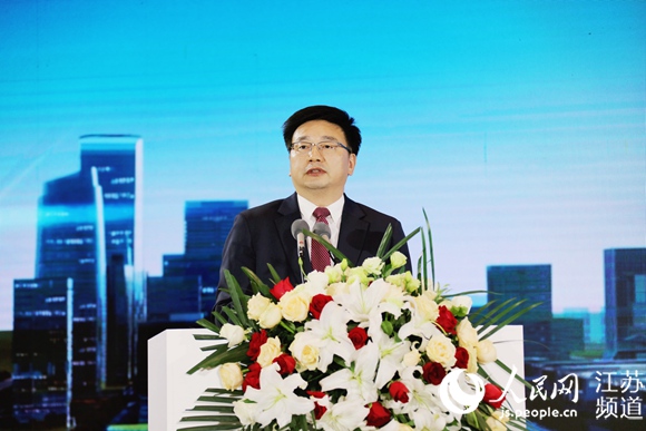 Han Liming, mayor of the Nanjing Municipal People's Government, delivers a speech at the Conference on Promoting the Construction of Manufacturing High-quality Development Pilot Zone in Lishui, Nanjing, March 24, 2020. (Photo/Geng Zhichao)