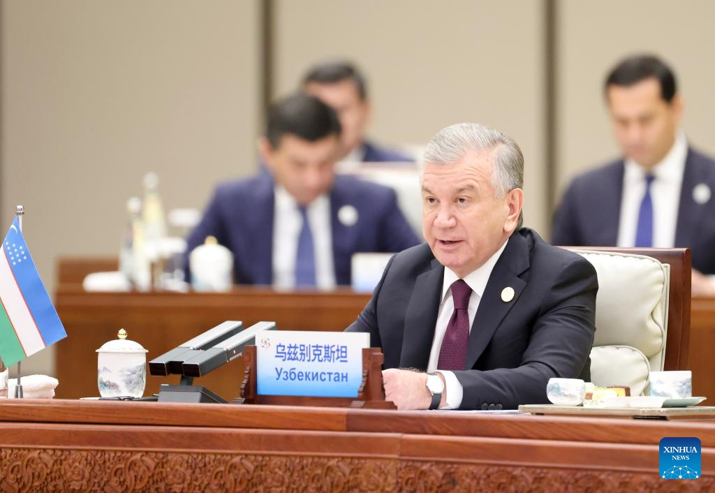 Uzbek President Shavkat Mirziyoyev speaks during the first China-Central Asia Summit in Xi'an, northwest China's Shaanxi Province, May 19, 2023. The first China-Central Asia Summit was successfully concluded here Friday.…