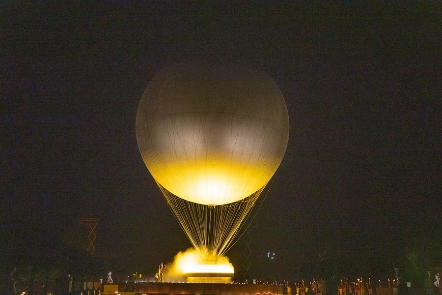 A balloon carrying the lit Paralympic cauldron is seen during the opening ceremony of the Paris 2024 Paralympic Games in Paris, France, Aug. 28, 2024.