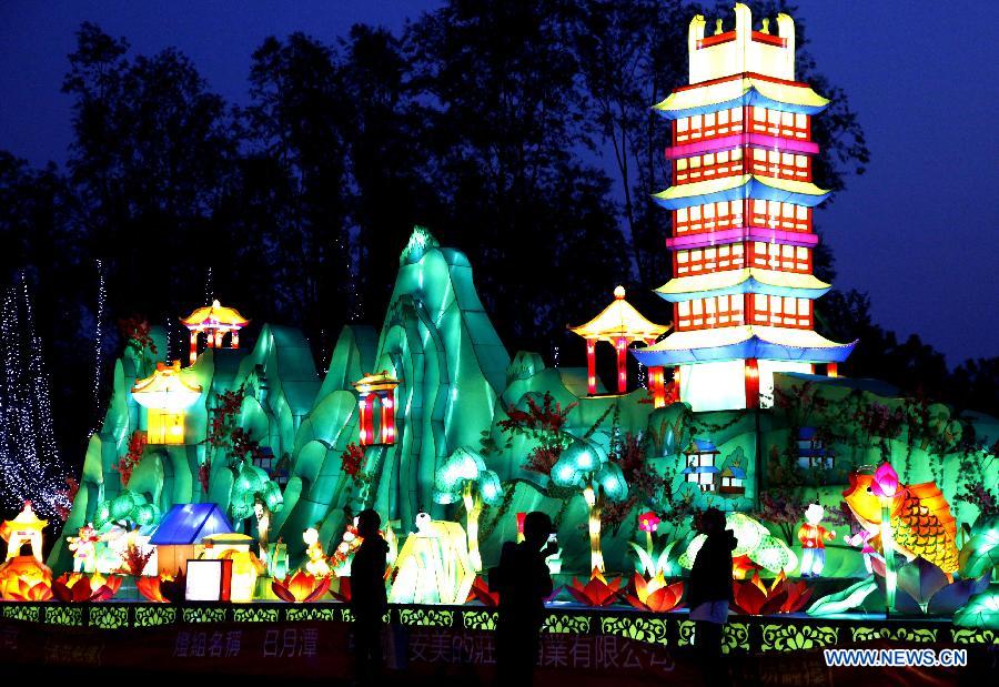 Photo taken on Oct. 6, 2014 shows lanterns themed on "Ali Mountain" during a lantern show in Beijing, capital of China. The lantern show demonstrated folk customs and culture of southeast China's Taiwan. (Xinhua/Pan Xu)