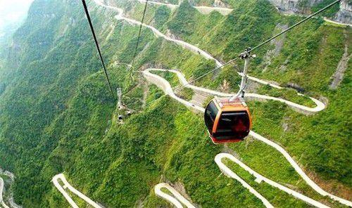 Tongtian Highway, located at the Tianmen Mountain National Forest Park in central China's Hunan province, is a winding mountain road to the famous Tianmen Cave on the mountain peak. Measuring more than 10 kilometers in length and 200 meters to 1,200 meters above sea level, the road has 99 sharp turns. It took eight years and about 100 million yuan (US$16.2 million) to construct the road. The Tongtian Highway is known as China's "most spectacular road" for its 99 bends and beautiful scenery along the way.