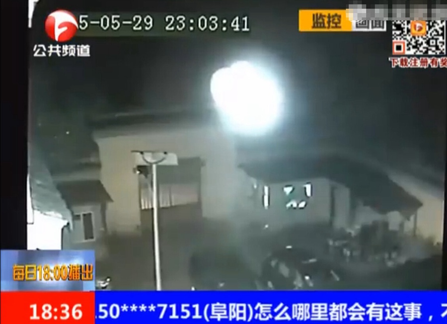 According to a report of Anhui Television, a UFO appeared at the Baita Temple of Bagong Mountain in east China's Anhui province at the midnight of May 29, 2015. According to the camera record, a UFO hovered over the temple for seven minutes; meanwhile its shape changed. (Photo/TV screenshot)