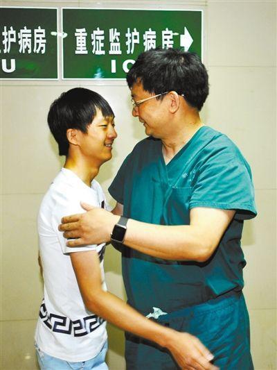 The 19-year-old Gu Qiao (L) huging the doctor.