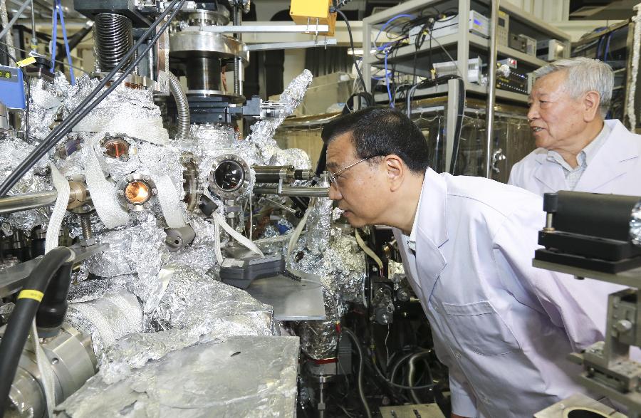 File Photo: Chinese Premier Li Keqiang inspects the Institute of Physics, Chinese Academy of Sciences, on May 7, 2015