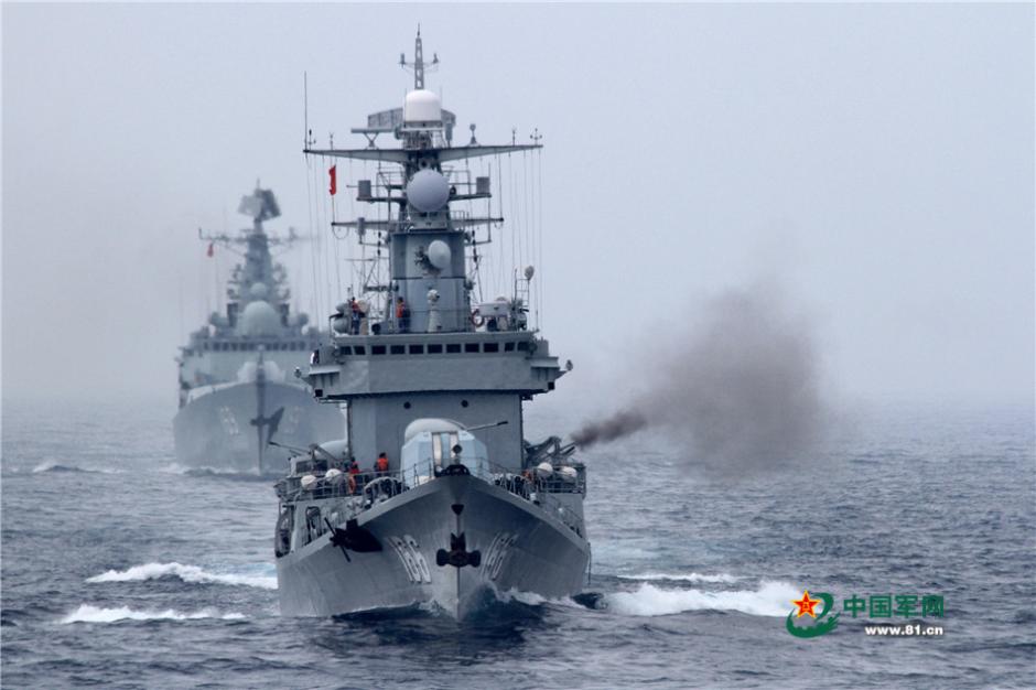 Photo shows a destroyer firing at target. The South China Sea Fleet of the Chinese People's Liberation Army(PLA) Navy conducts a live-fire military drill. (Source: 81.cn)