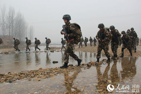 Photo shows soldiers experiencing winter training in Henan Province on Dec. 26, 2016. [Photo: people.cn]
