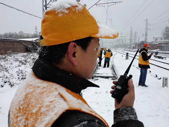 As heavy snowfall hit many parts of central and eastern China on January 4, workers at Luoyang Locomotive Depot of China Railway's Zhengzhou Group wrapped sandpipes with plastic bags to avoid freezing.