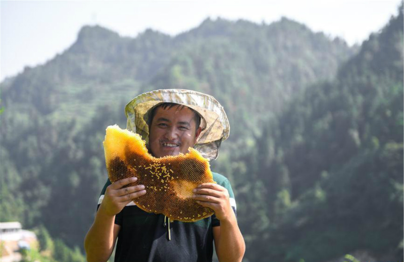 In 2018, Long's honey output was over 1,000 kilograms, granting him an income of nearly 300,000 yuan. He said this year's yield is expected to sell for over 500,000 yuan.