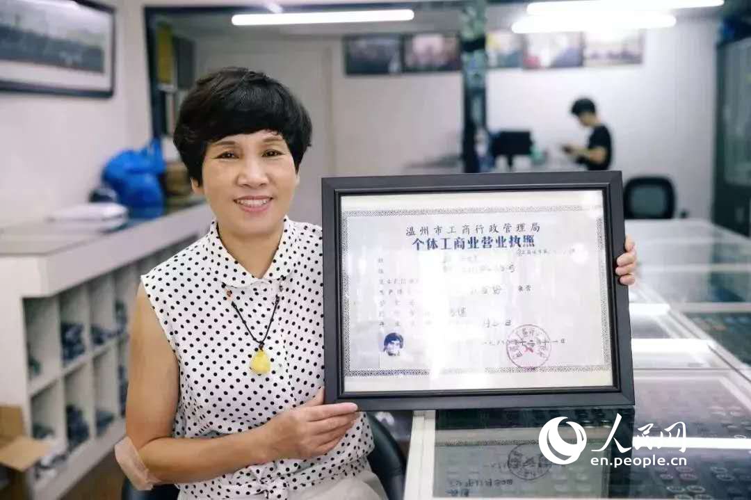 Hearing the news, Zhang quickly applied for a business license by submitting her personal information, two photos and a description of her business. In 1980, she became the first of more than 2,000 vendors in Wenzhou, and upgraded her table-shop into a one floor store. The buttons that she sold were now displayed on counters.