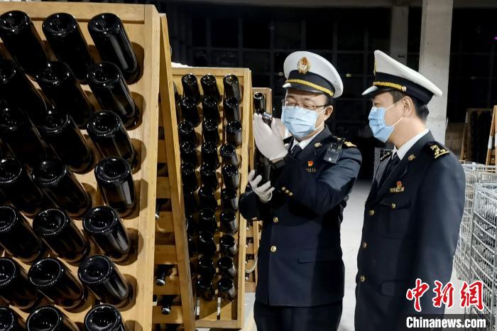 Customs officers check Ningxia wine to be exported. (Photo courtesy of Yinchuan customs)