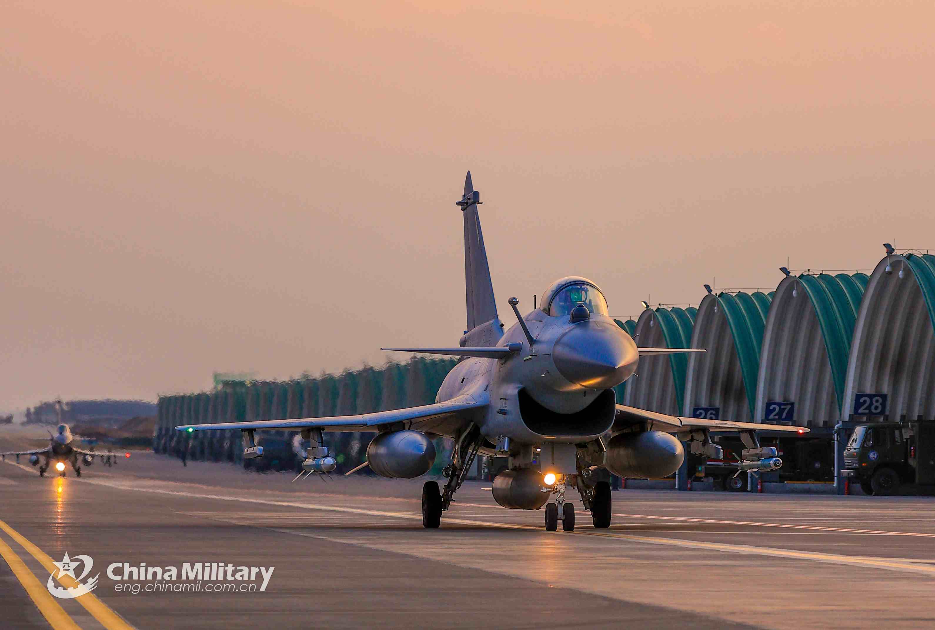 A fighter jet attached to an air force aviation brigade under the PLA Southern Theater Command taxies on the flightline before takeoff during a round-the-clock flight training exercise on March 4, 2021. (eng.chinamil.com.cn/Photo by Wang Guoyun)