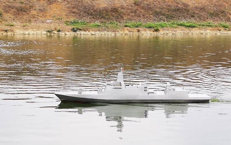 A warship model built by a villager in southwest China's Guangxi Zhuang autonomous region has made a successful maiden voyage, during which it was seen moving forward and backward, making turns, and picking up speed easily.