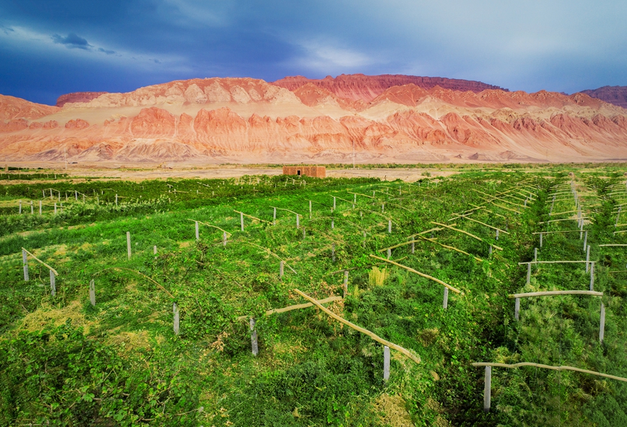 Nestled among the Flaming Mountain and gurgling brooks, Yunus’ vineyard is a calling card of Turpan, one of China’s largest grape growing and raisin producing areas. The region produces 52.84 percent of Xinjiang’s grapes, accounting for over one fifth of China’s grape production. There are over 38,000 hectares of vineyards and more than 500 kinds of grapes in Turpan, growing over 1.2 million tons of grapes in 2020.