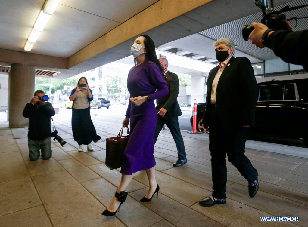 China's Huawei Chief Financial Officer Meng Wanzhou arrives at the court in Vancouver, Canada, Aug. 18, 2021. Canada's British Columbia Supreme Court concluded the hearings of Meng Wanzhou's extradition case Wednesday afternoon, with a final decision expected to come later in October. (Photo by Liang Sen/Xinhua)