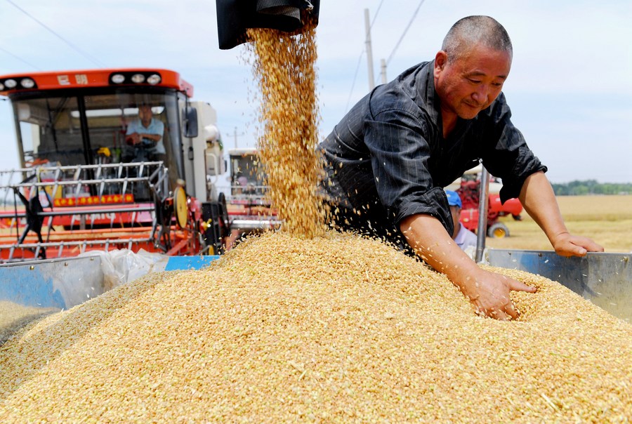This year, the planting area for high-quality wheat in Funan county in east China’s Anhui province has surpassed 300,000 mu. The county has provided six high-quality wheat varieties for farmers to grow, while inviting agricultural companies and grain trading companies to assist farmers in promoting standardized and large-scale farming. Thanks to these efforts, the yield of high-quality summer wheat accounted for 60 percent of the overall summer wheat yield in the county.