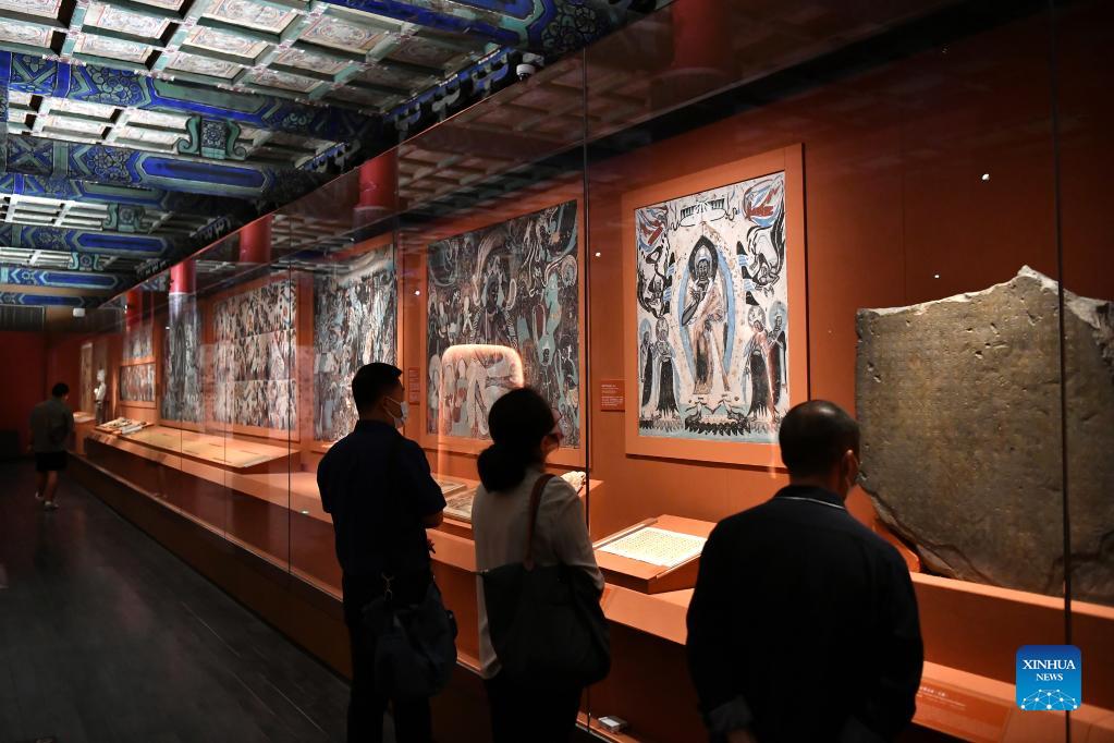People visit an exhibition themed on Dunhuang culture at the Palace Museum, also known as the Forbidden City, in Beijing, capital of China, Sept. 17, 2021. (Xinhua/Li Xin)