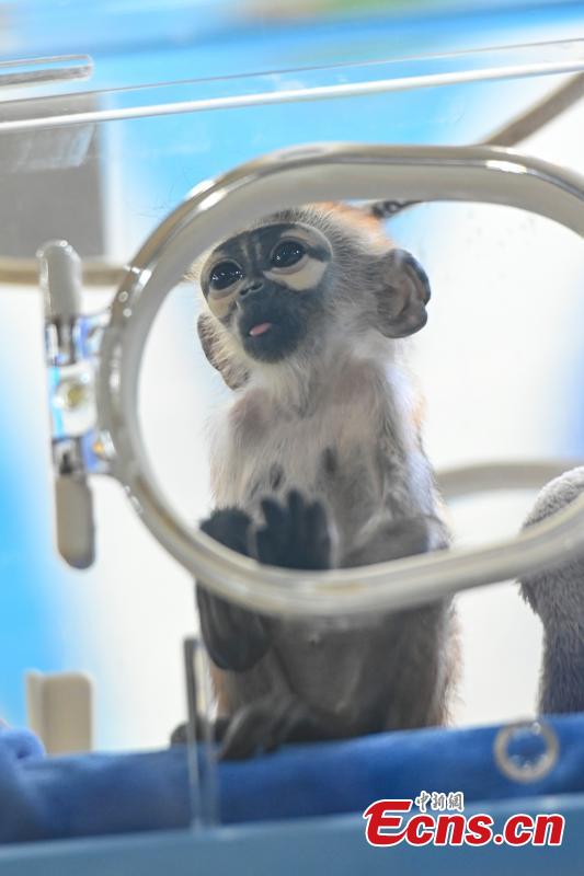 The black-shanked douc langur stays in incubators at Chimelong Safari Park in Guangzhou, Guangdong Province, Nov. 10, 2021. (Photo: China News Service/Chen Jimin)