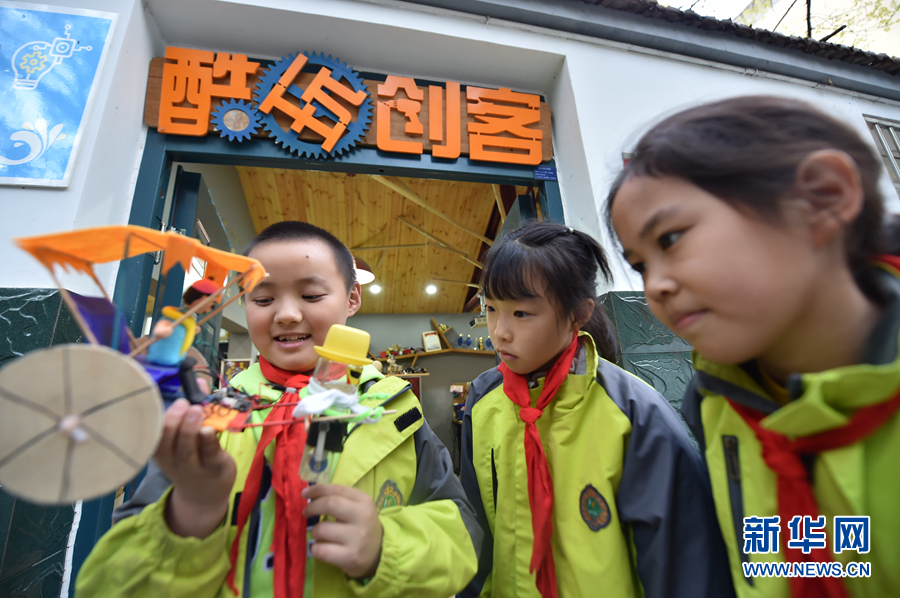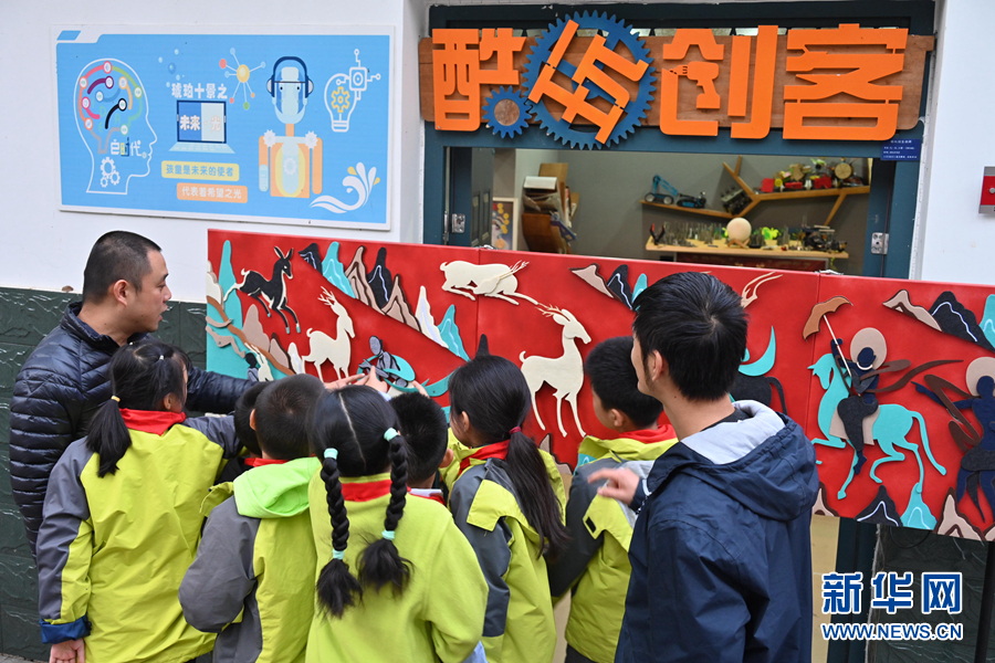 A primary school in Hefei City, east China's Anhui Province, has set up an "innovation studio" in a bid to broaden students' horizen by enriching their knowledge of science and arts. At the studio, students are encouraged to make the paintings from their textbooks "come alive" with the help of sound, light, and even programming. Such activities are in line with the "double reduction" policy, namely reducing students' excessive homework and off-campus tutoring during their nine-year compulsory education. (Xinhuanet/Yang Xiaoyuan)