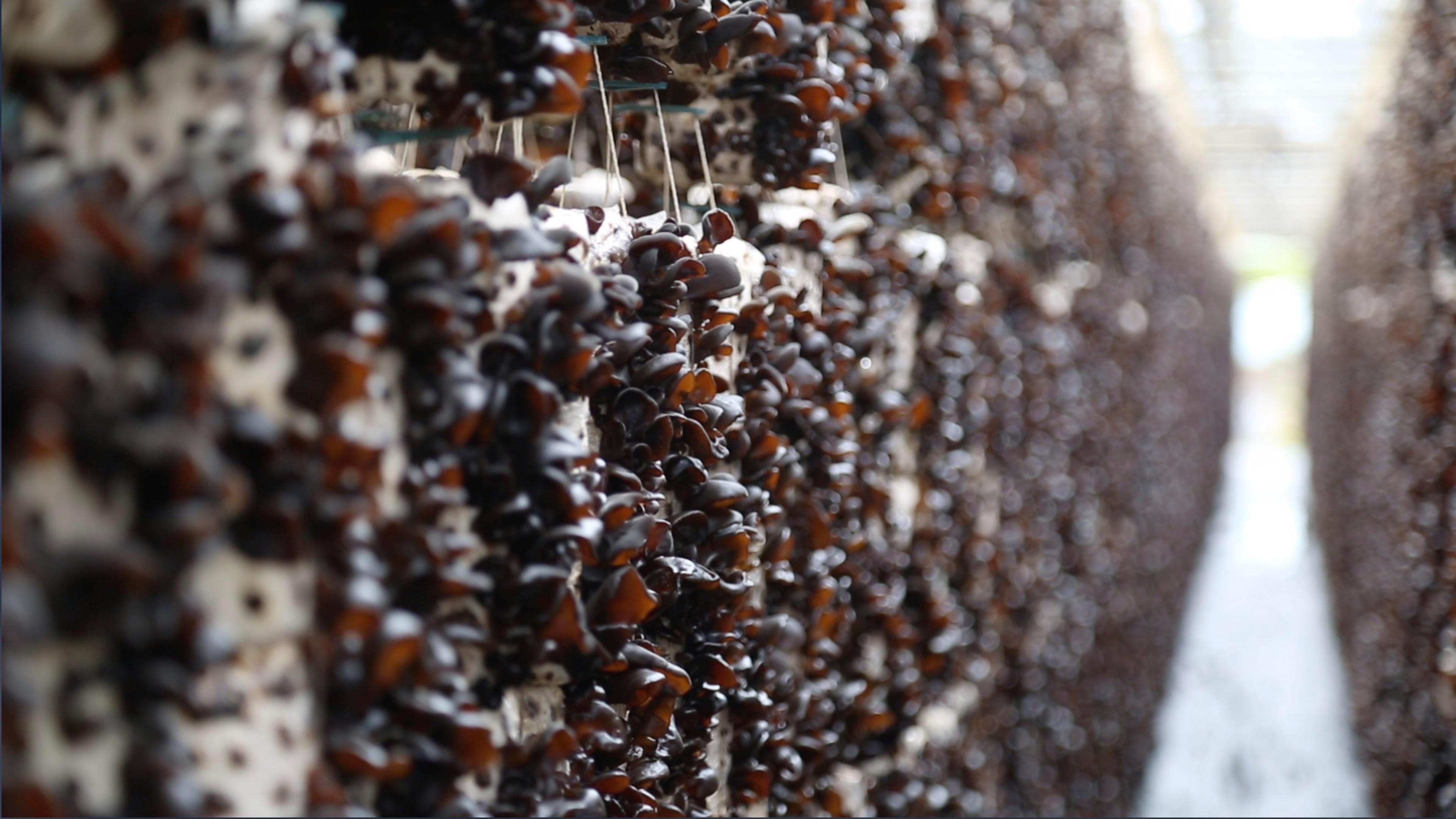 In recent years, the black fungus has also shown increasing business potential as it becomes adopted as one of the ingredients used in snacks, drinks, cosmetics, and a variety of other products. Here in Dongning, the wood ear mushroom industry is mushrooming, budding forth in full force.