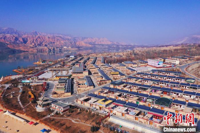 Aerial photo shows Dekyi village, Jainca county, Huangnan Tibetan Autonomous Prefecture, northwest China’s Qinghai Province. (Chinanews.com/Ma Yingyan)