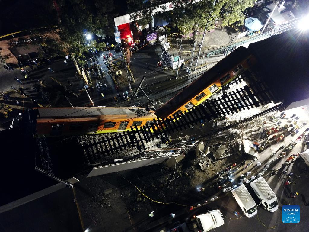 Aerial photo taken on May 4, 2021 shows the scene of a metro bridge collapse in Mexico City, Mexico. (Xinhua/Xin Yuewei)