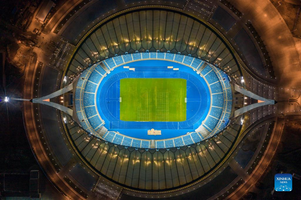 Aerial photo taken on Sept. 9, 2021 shows the China-funded Morodok Techo National Stadium in Phnom Penh, Cambodia. (Photo by Chen Gang/Xinhua)