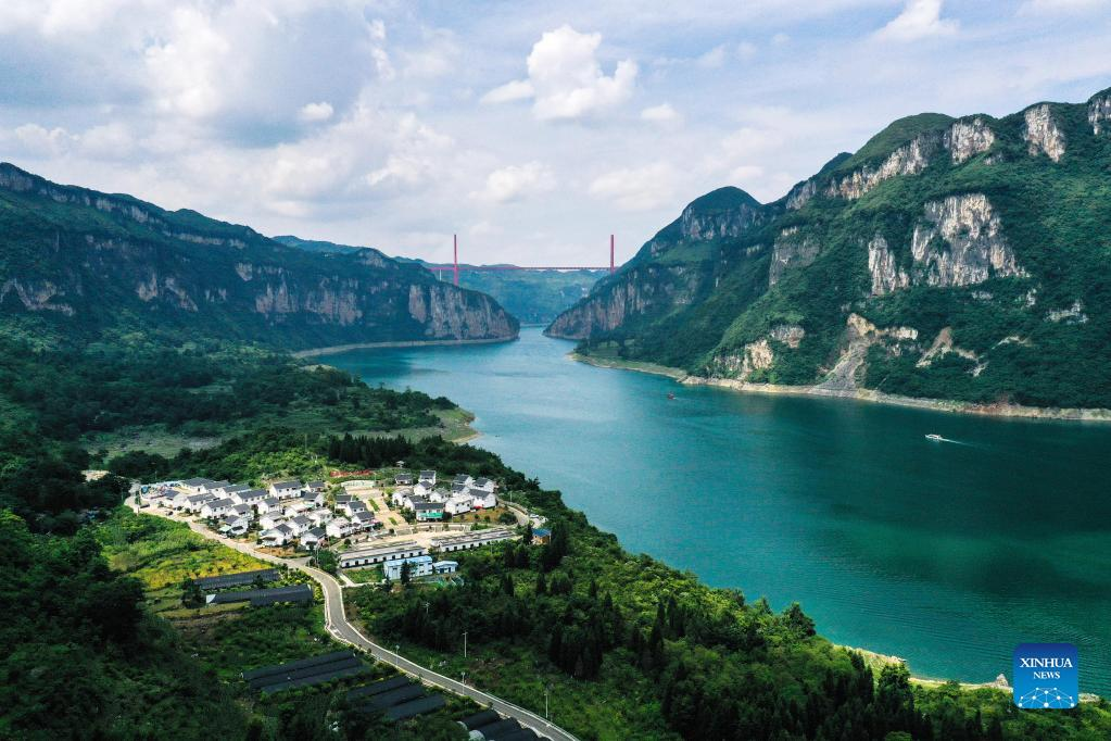 Aerial photo taken on July 24, 2021 shows the view of a relocation site for poverty alleviation at Huawu Village in Xinren Miao Township, Qianxi City, southwest China's Guizhou Province. (Xinhua/Yang Wenbin)