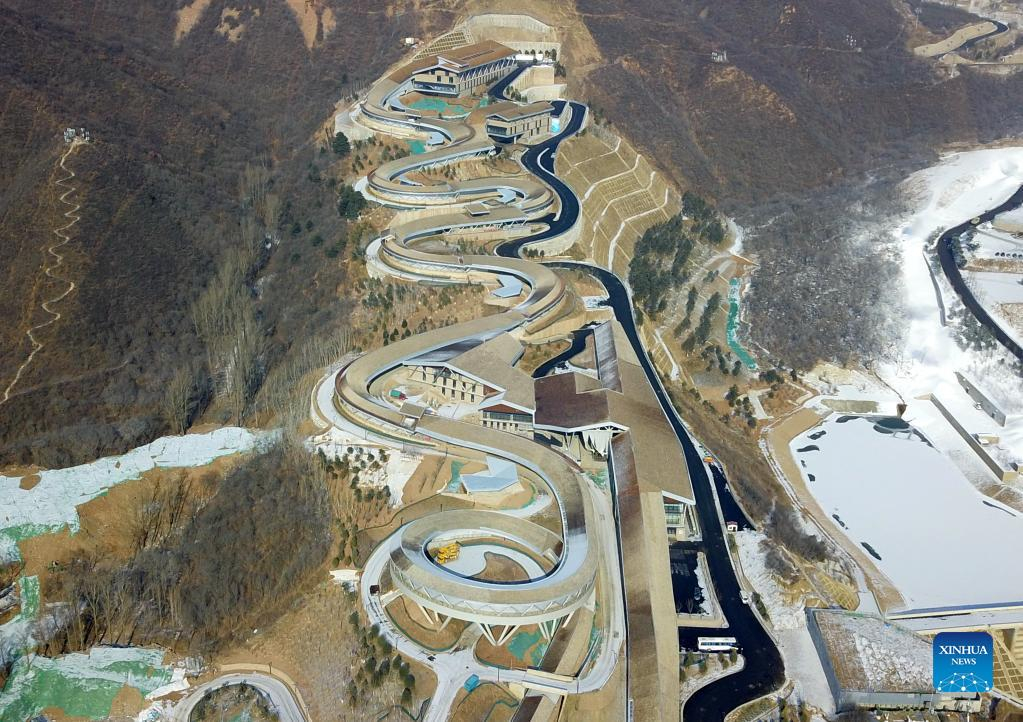 Aerial photo taken on Jan. 19, 2021 shows the National Sliding Center in Yanqing District, Beijing, capital of China. (Xinhua/Zhang Chenlin)