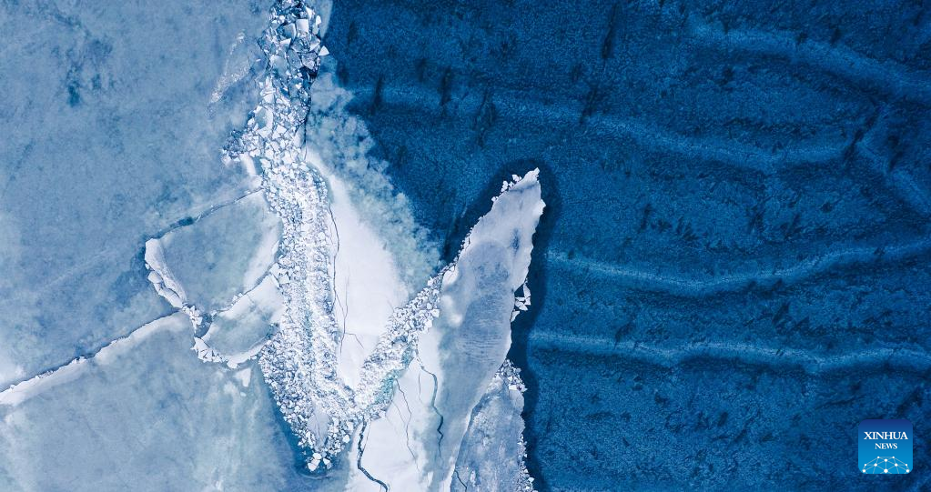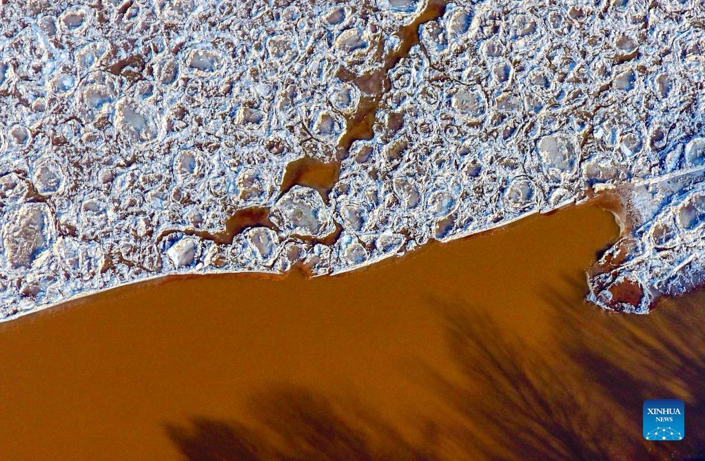 Aerial photo taken on Jan. 11, 2021 shows the frozen Yellow River in Jinan, capital of east China's Shandong Province. (Xinhua/Zhu Zheng)