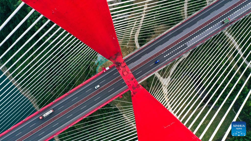 Aerial photo taken on July 23, 2021 shows the Yachihe bridge along the expressway linking Guiyang and Qianxi in southwest China's Guizhou Province. (Xinhua/Yang Wenbin)