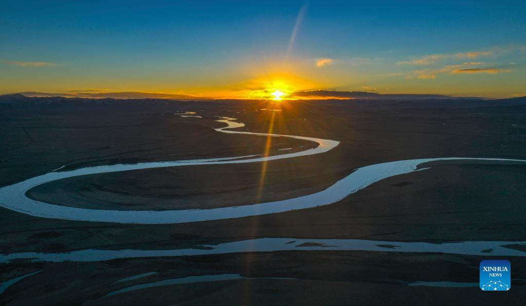 Aerial photo taken on Nov. 24, 2021 shows the sunset view in Zogie County, Aba Tibetan and Qiang Autonomous Prefecture, southwest China's Sichuan Province. (Xinhua/Wang Xi)