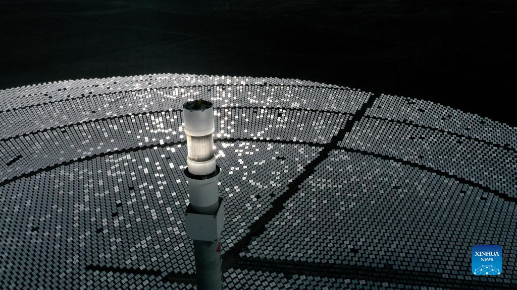Aerial photo taken on March 3, 2021 shows a solar thermal power project in Gonghe County, Tibetan Autonomous Prefecture of Hainan, northwest China's Qinghai Province. (Xinhua/Zhang Hongxiang)