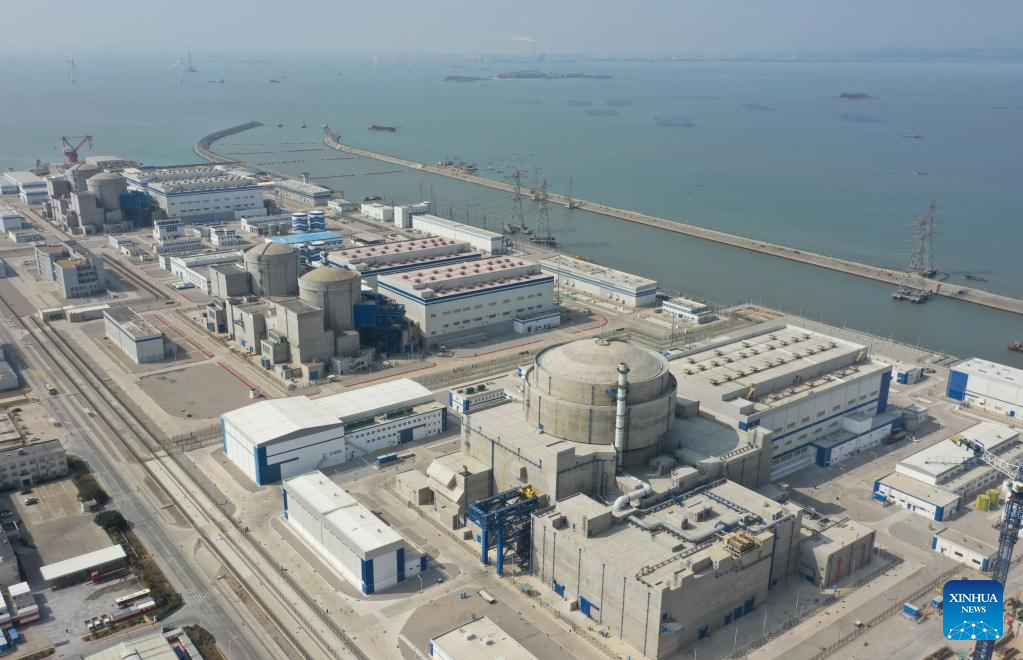 Aerial photo taken on Jan. 27, 2021 shows the exterior view of nuclear power units of the China National Nuclear Corporation (CNNC) in Fuqing, southeast China's Fujian Province. China's first nuclear power unit using Hualong One, a domestically-designed third-generation nuclear reactor, has entered commercial operation, said the CNNC on Jan. 30, 2021. (Xinhua/Lin Shanchuan)