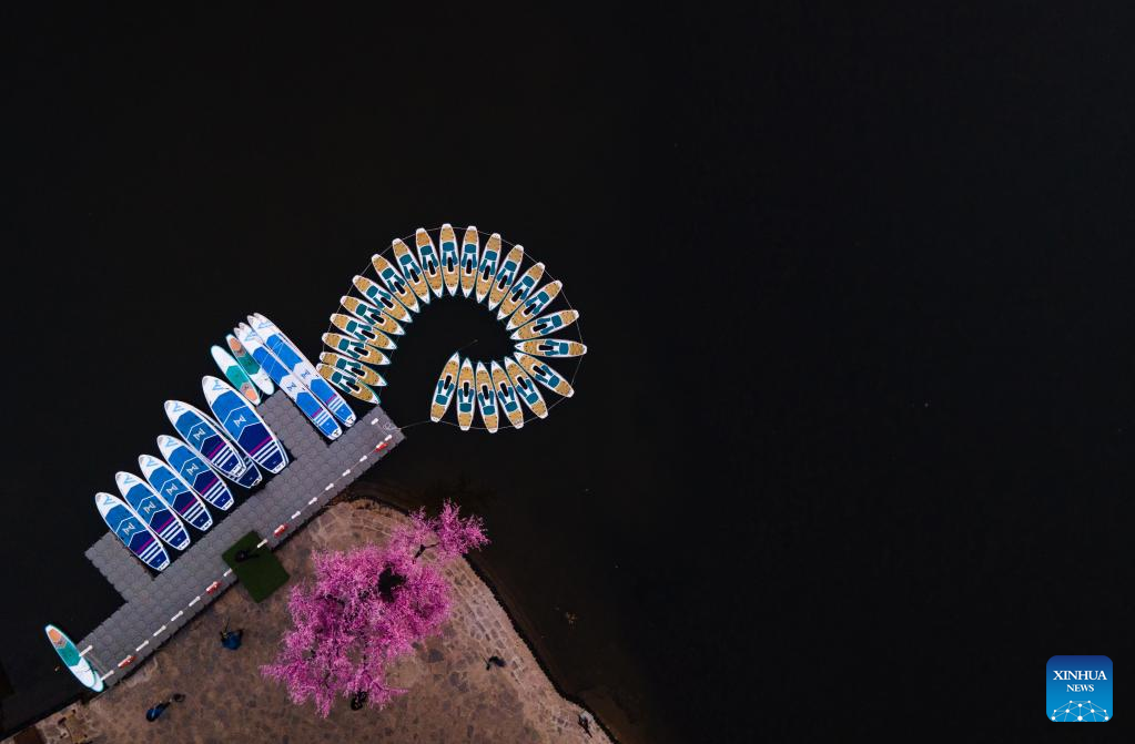 Aerial photo taken on March 8, 2021 shows the scenery at the Puzhehei national wetland park in Qiubei County of southwest China's Yunnan Province. (Xinhua/Wang Guansen)