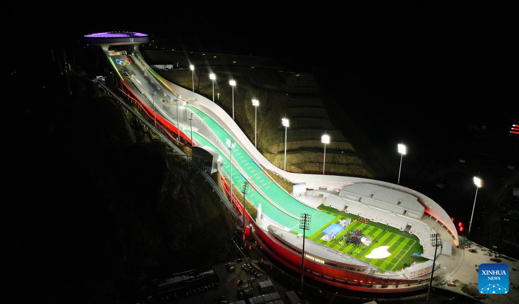 Aerial photo taken on Oct. 26, 2021 shows the National Ski Jumping Center in Chongli District of Zhangjiakou City, north China's Hebei Province. (Xinhua/Jin Haoyuan)