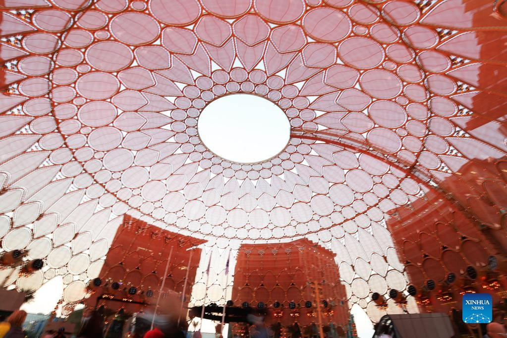 Photo taken on Jan. 9, 2022 shows a gigantic dome at the Al Wasl Plaza of the Expo 2020 Dubai in Dubai, the United Arab Emirates. As night falls on Expo 2020 Dubai, everything is just getting more fantastic. The cool breeze caresses the faces of visitors, healing them from a day of fatigue and breathing refreshing joviality into them. According to official data, Expo 2020 Dubai recorded 8,958,132 visits from Oct. 1 to Dec. 31, 2021. (Xinhua/Wang Dongzhen)