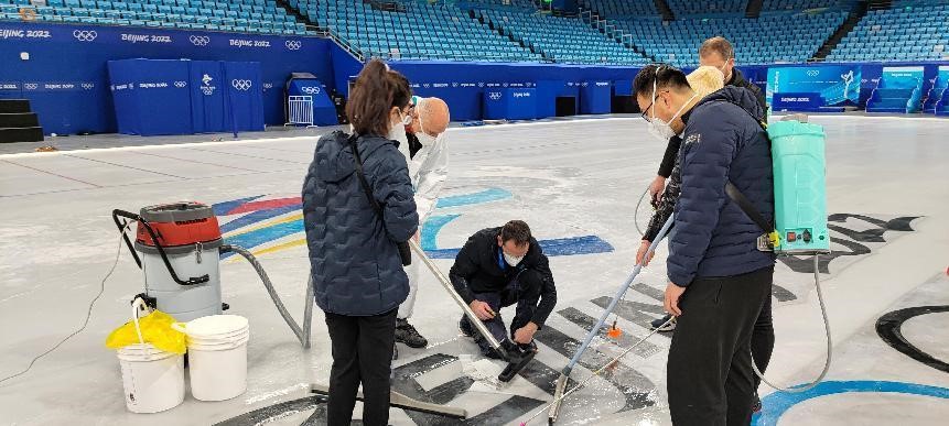 To make sure the temperature of the ice surface is within the optimum ranges required by figure skating and fast track speed skating competitions every day, the team adjusts the condition of ice surface and changes protective pads several times a day, and the ice master works closely with Chinese engineers in charge of machinery and equipment to keep close control over the temperatures of the air, water, and the refrigerating system of the rink, according to Boehler.
