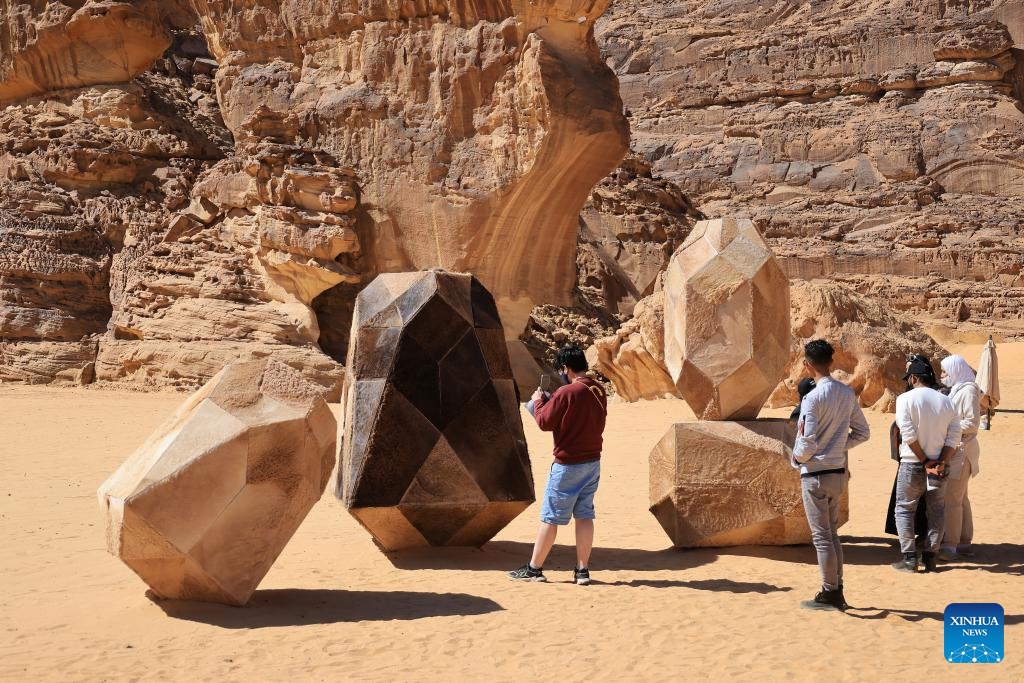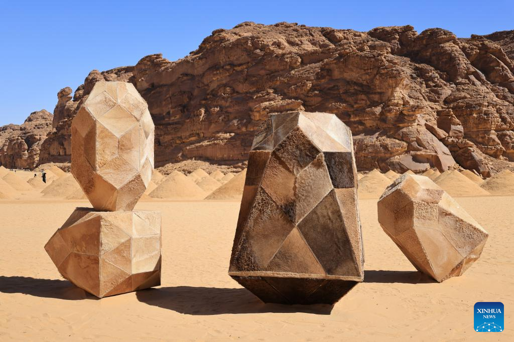 RIYADH, Feb. 11 (Xinhua) --Under the theme of Sarab (mirage in English), the event runs from Feb. 11 to March 30 and aims to explore ideas of mirage and oasis, where participating artists are invited to address dreams, camouflage, fiction, appearance or disappearance, extraction, illusion and myth, and examine the dichotomy between the natural and manmade worlds.