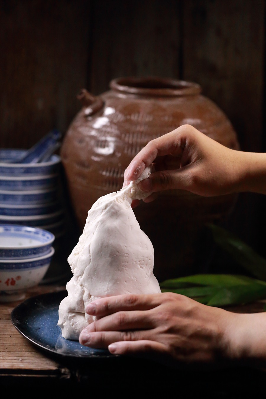 Photo shows the wrapper for a glutinous rice ball at Erlongbo, a century-old restaurant, in Fuzhou city, southeast China’s Fujian Province. (Photo/Lin Wei)