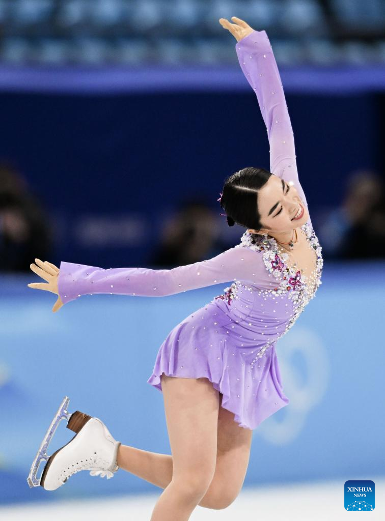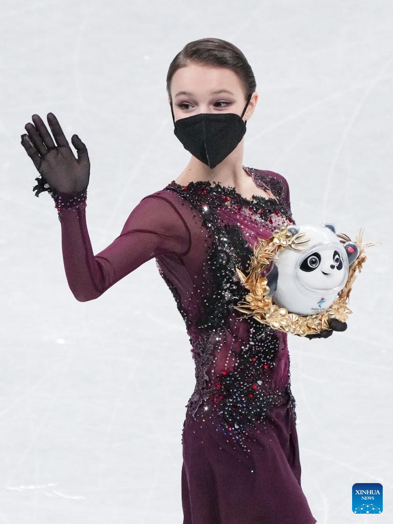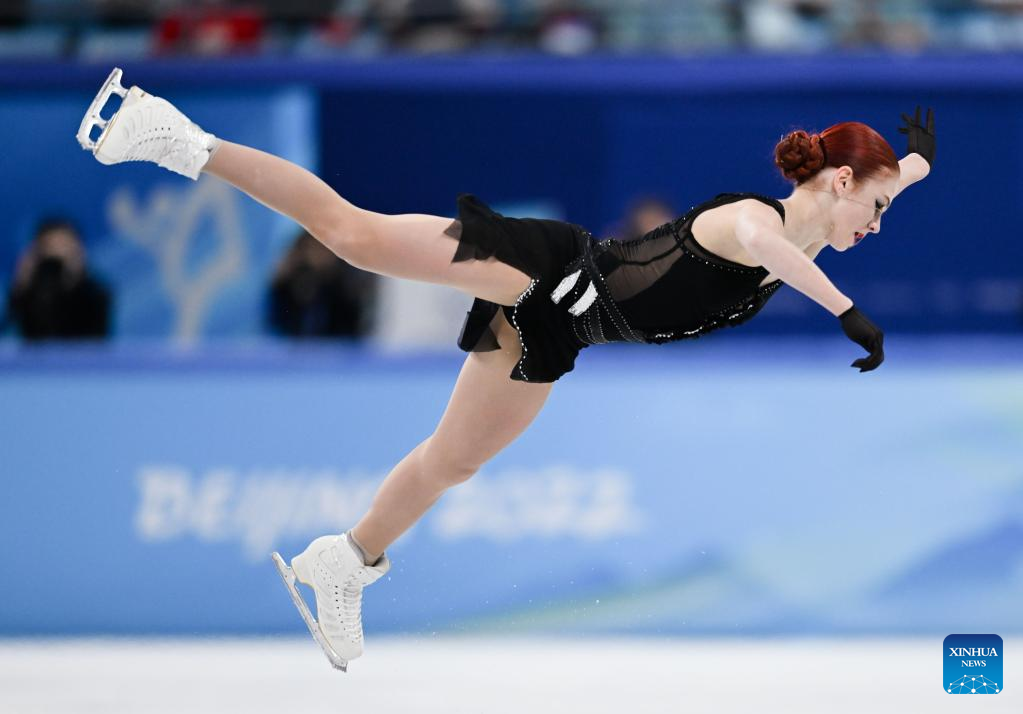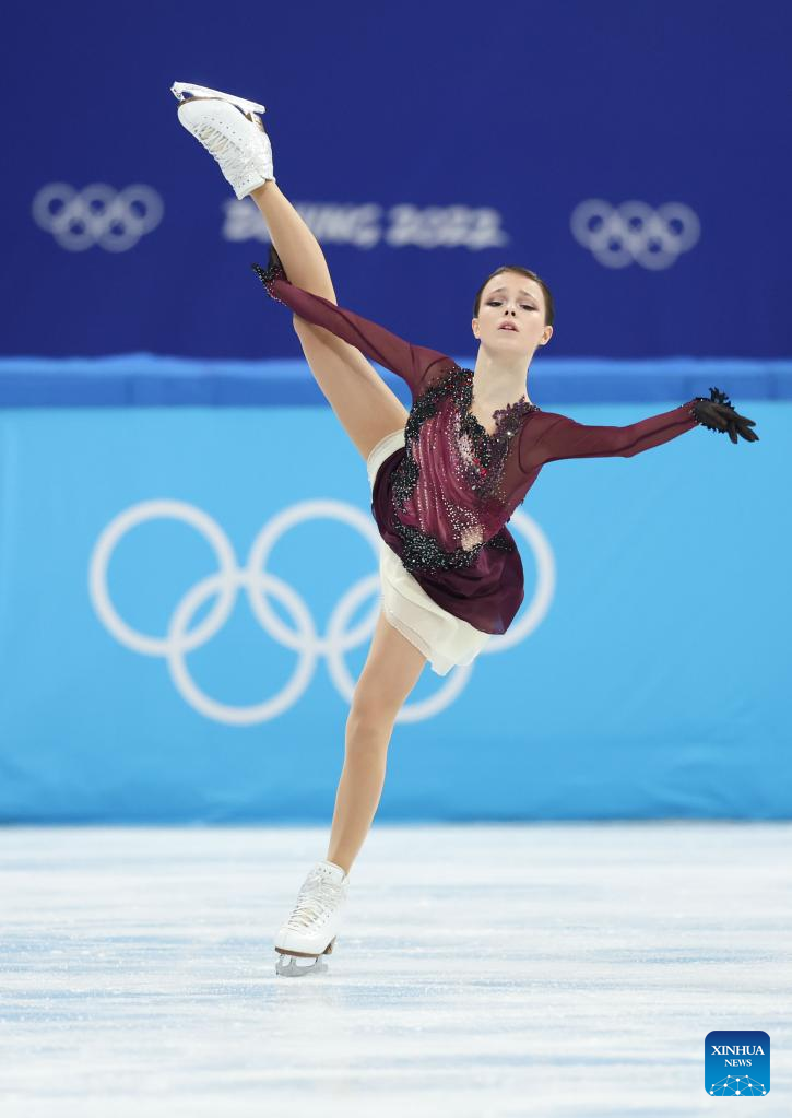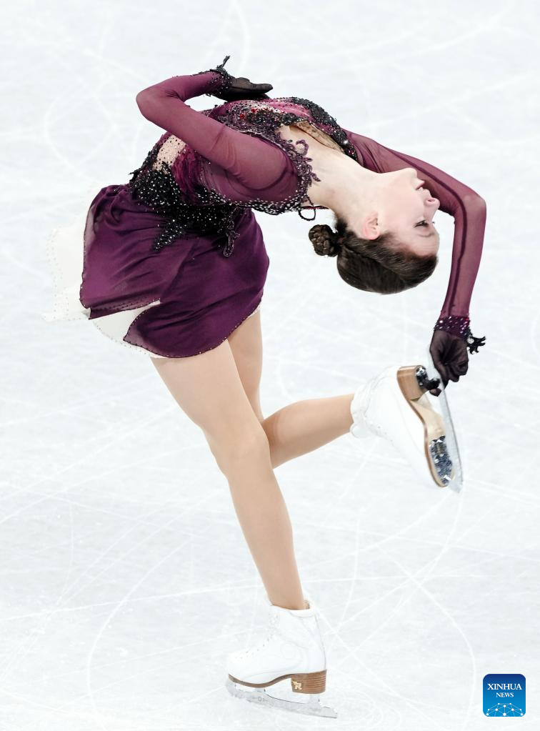 BEIJING, Feb. 17 (Xinhua) -- Reigning world champion Anna Shcherbakova skated a clean segment to win the women's singles figure skating at the Beijing Olympic Winter Games, holding off a strong challenge from compatriot Alexandra Trusova here on Thursday evening.