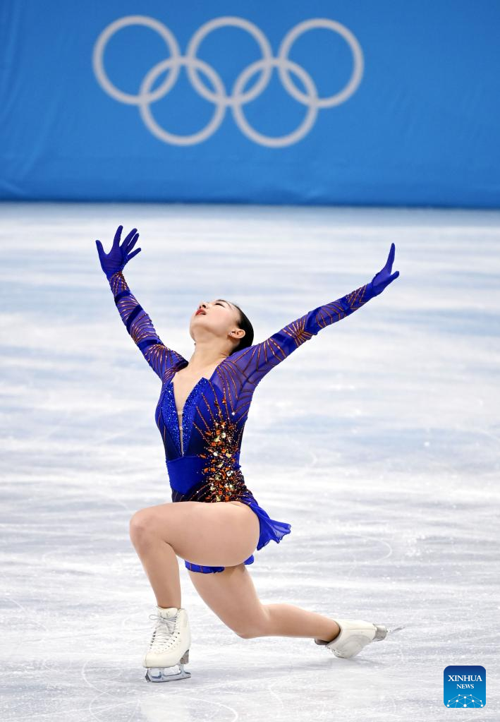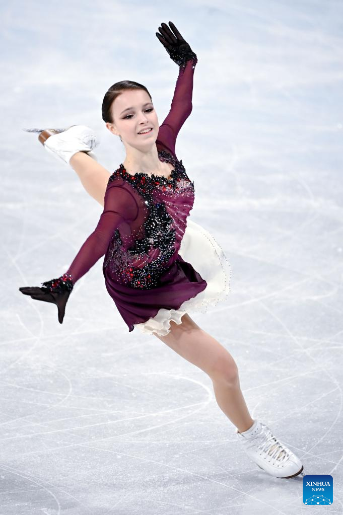 Anna Shcherbakova of ROC performs during the figure skating women single skating free skating of the Beijing 2022 Winter Olympics at Capital Indoor Stadium in Beijing, capital of China, Feb. 17, 2022. (Xinhua/Li Ziheng)