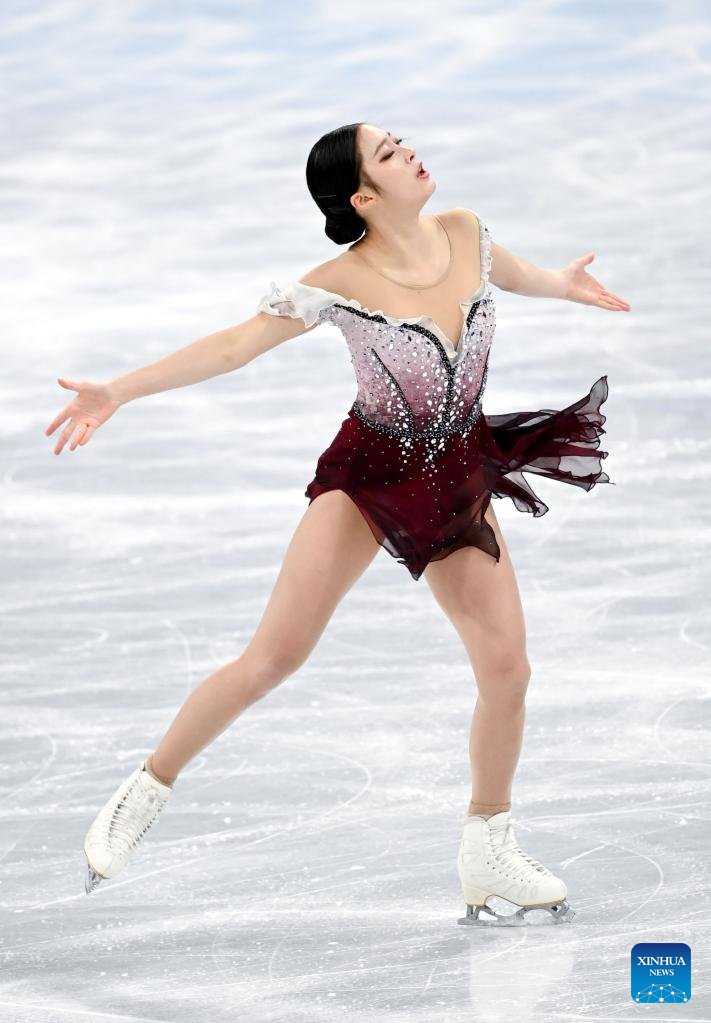 You Young of South Korea performs during the figure skating women single skating free skating of the Beijing 2022 Winter Olympics at Capital Indoor Stadium in Beijing, capital of China, Feb. 17, 2022. (Xinhua/Li Ziheng)
