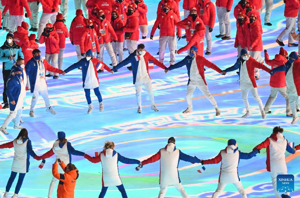 Athletes parade during the closing ceremony of the Beijing 2022 Olympic Winter Games at the National Stadium in Beijing, capital of China, Feb. 20, 2022. (Xinhua/Cao Can)