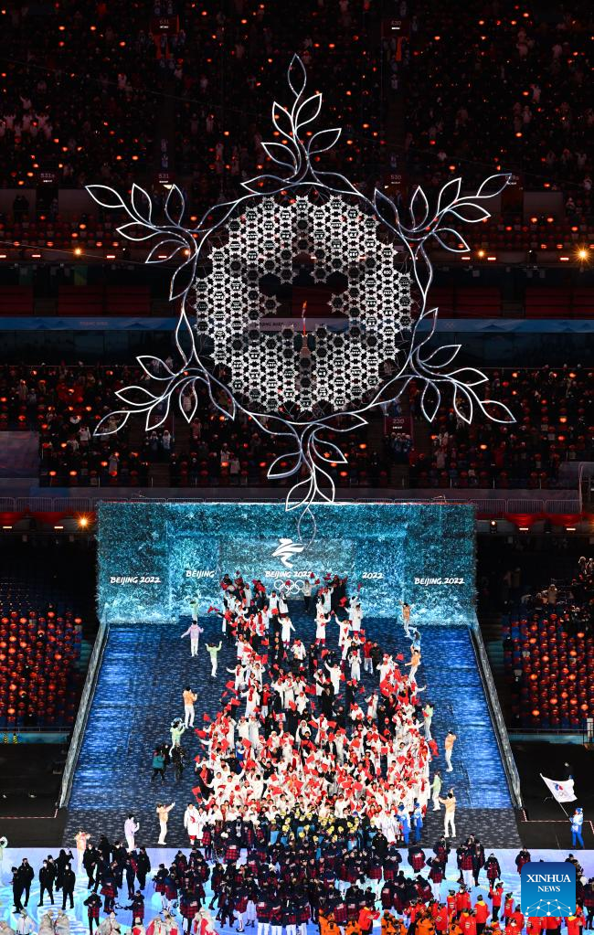 Athletes parade during the closing ceremony of the Beijing 2022 Olympic Winter Games at the National Stadium in Beijing, capital of China, Feb. 20, 2022. (Xinhua/Li He)