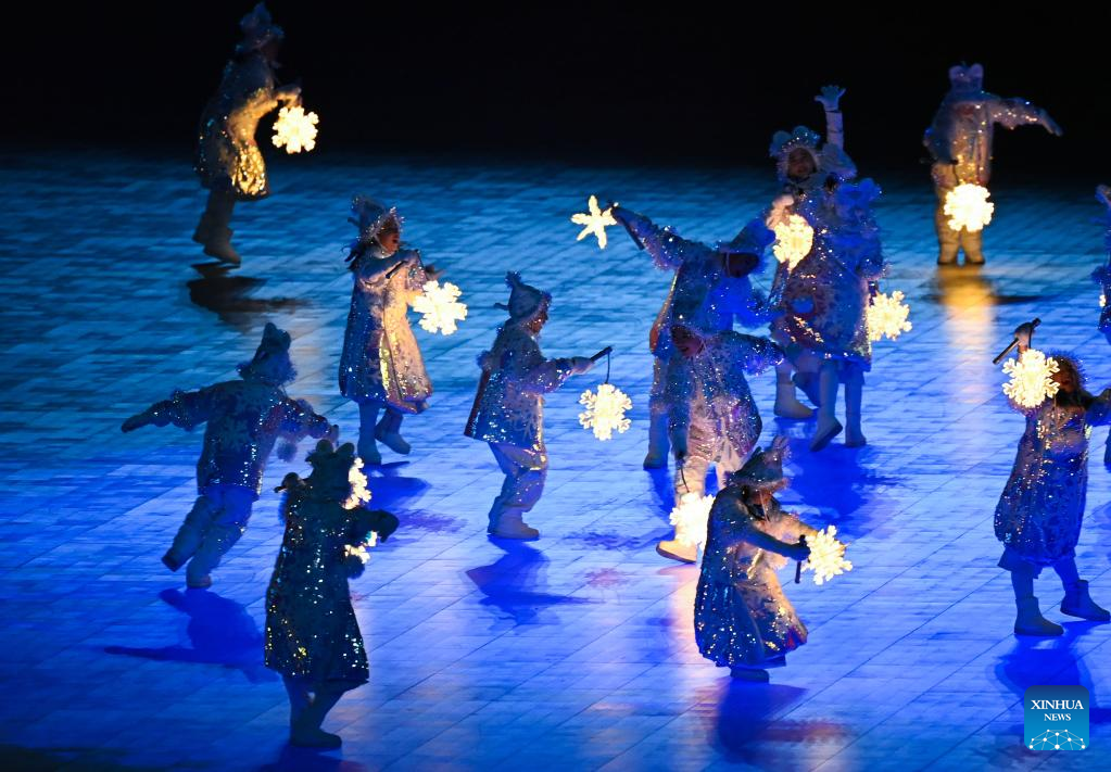 Actors perform during the closing ceremony of the Beijing 2022 Olympic Winter Games at the National Stadium in Beijing, capital of China, Feb. 20, 2022. (Xinhua/Li He)