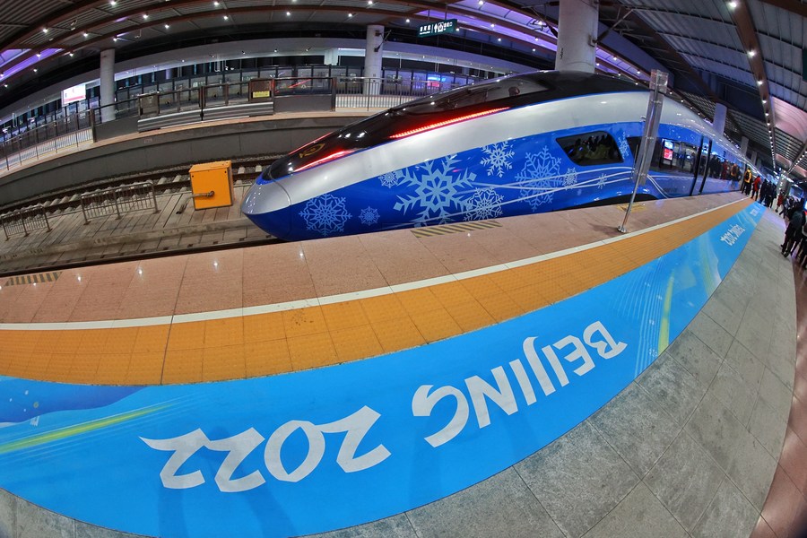 A tailor-made bullet train made its maiden journey in January along the high-speed railway linking Beijing and Zhangjiakou, the co-host city of the Beijing 2022 Winter Olympics.