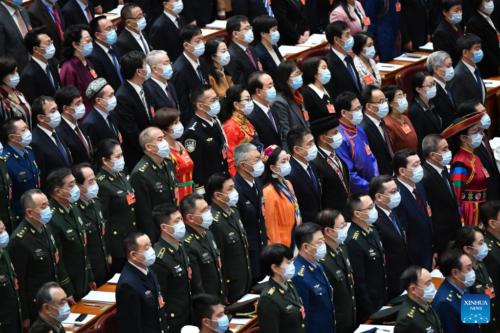 The fifth session of the 13th National People's Congress (NPC) opens at the Great Hall of the People in Beijing, capital of China, March 5, 2022. Leaders of the Communist Party of China and the state Xi Jinping, Li Keqiang, Wang Yang, Wang Huning, Zhao Leji, Han Zheng and Wang Qishan attended the opening meeting of the fifth session of the 13th NPC, and Li Zhanshu presided over the meeting. (Xinhua/Ju Peng)