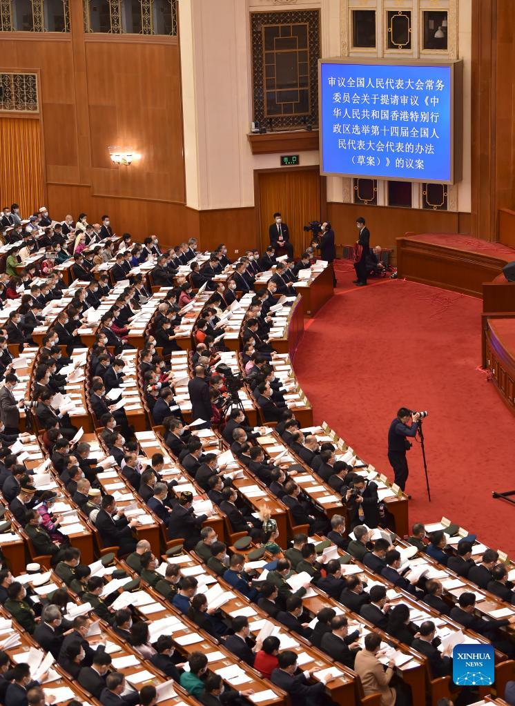 Wang also explained draft methods for the Hong Kong Special Administrative Region (SAR) and the Macao SAR to elect their deputies to the 14th NPC.