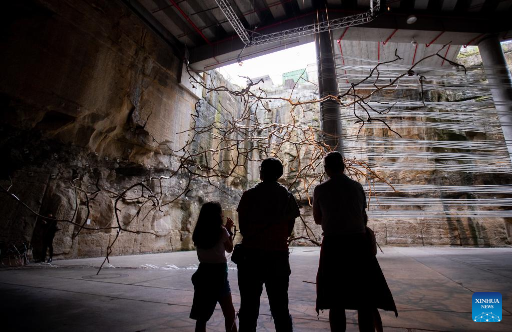 People visit Biennale of Sydney "rivus" at Art Gallery of New South Wales (NSW) in Sydney, Australia, on March 13, 2022. The 23rd Biennale of Sydney is held from March 12 to June 13, with more than 330 artworks by over 80 participants presented during the event. (Photo by Hu Jingchen/Xinhua)