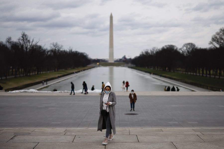 People visit the National Mall in Washington, D.C., the United States, Jan. 17, 2022. (Photo by Ting Shen/Xinhua)